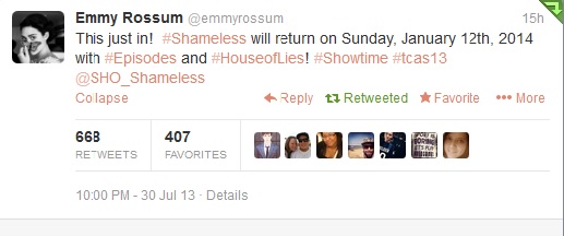 Posted By Becky on Aug 28 2013 | Tagged : Cameron news, Shameless, Twitter | With 0 Comments